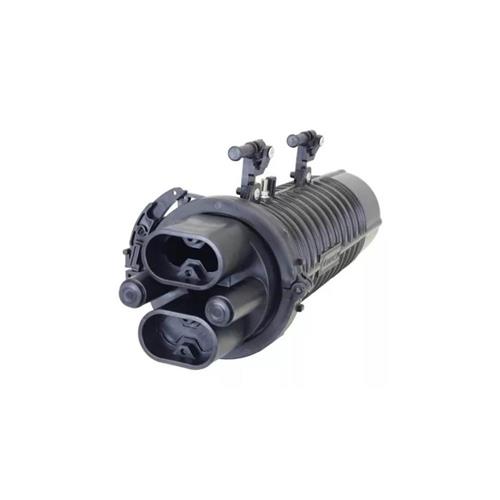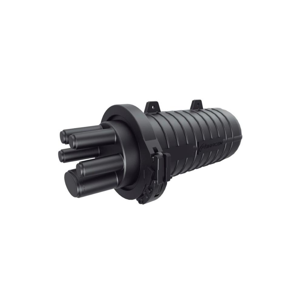 A Caixa de Emenda Óptica 24 Fibras Dual Junior possui configuração unidirecional, com 2 entradas ovais – uma principal e uma reserva – que permitem o fechamento termocontrátil ou mecânico e 2 entradas cilíndricas para cabos derivados. E fácil fechamento mecânico entre a cúpula e base através de um conjunto de abraçadeiras. Homologada pela Anatel.