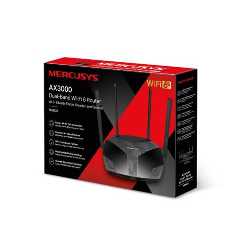 Home > WIFI 6 > Roteador Mercusys MR80X, AX3000 Dual Band, Wi-Fi 6, Preto