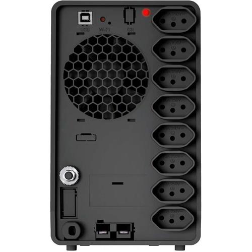 8 tomadas de saída no padrão NBR 14136, sendo duas delas com capacidade de 20A para a conexão de equipamentos que demandam mais energia.