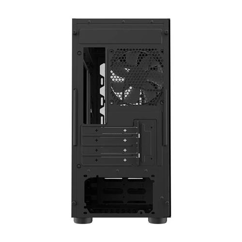 O painel frontal de geodo exclusivo da CMP 320L permite fluxo de ar irrestrito e térmicas ideais, possui revestimento preto completo e tampa da fonte de alimentação respirável.