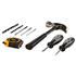 1 Chave de mandril, 1 Punho auxiliar multidirecional, 1 Régua de profundidade, 1 Maleta organizadora, 1 Trena de 3 metros, 1 Chave Philips, 1 Chave de Fenda, 2 Brocas para madeira (6 e 8 mm), 3 Brocas para alvenaria (5, 6 e 8 mm), 1 Martelo.