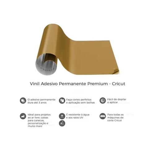 O Vinil Adesivo Permanente Premium Cricut, 30x122cm, Gold, Alta Durabilidade é ideal para quem busca acabamento profissional e resistência superior em seus projetos criativos. Com adesão permanente e superfície lisa, proporciona cortes precisos e aplicação uniforme em superfícies lisas como vidro, metal, plástico e madeira.