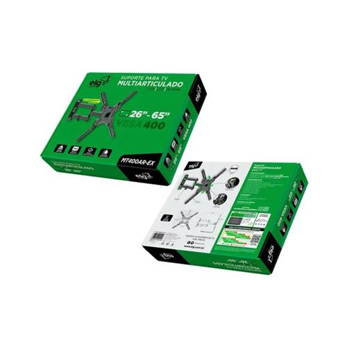 Suporte Articulado para TV, ELG, MT400AR-EX, 26” a 65”, Preto, Inclinação e Giro, VESA até 400x400