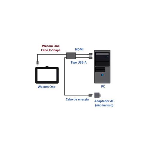O X-Shape para Display Interativo Wacom One é um cabo de substituição projetado para conectar a Wacom One ao seu computador, display e adaptador de tomada simultaneamente, o que é essencial para a sua funcionalidade básica.